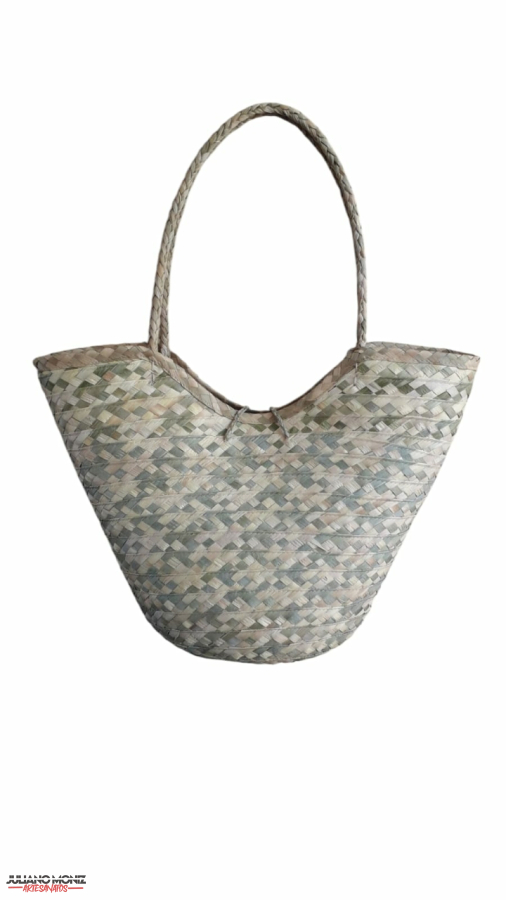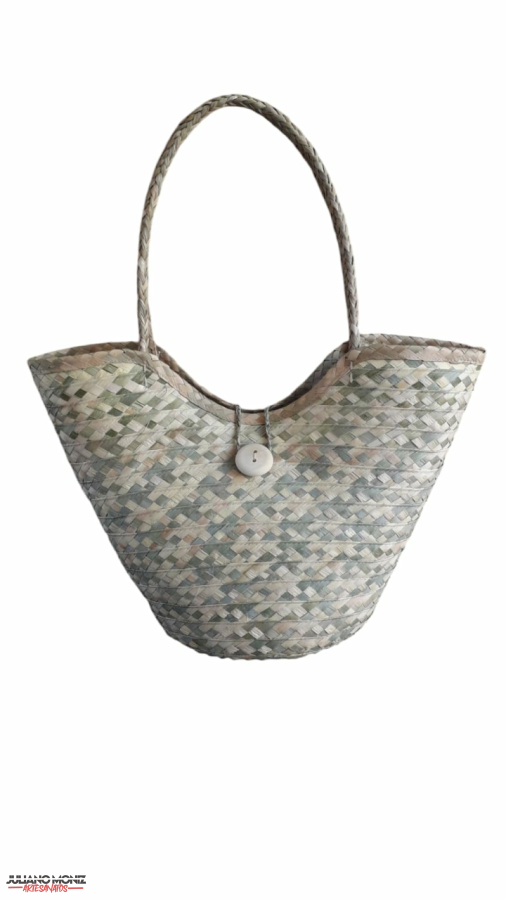 Bolsa de praia em palha de carnaúba alças de taboa modelo balde com boca de canoua tamanho G valor 200,00 reais