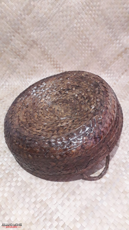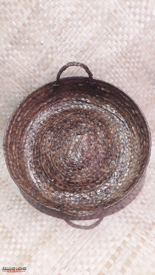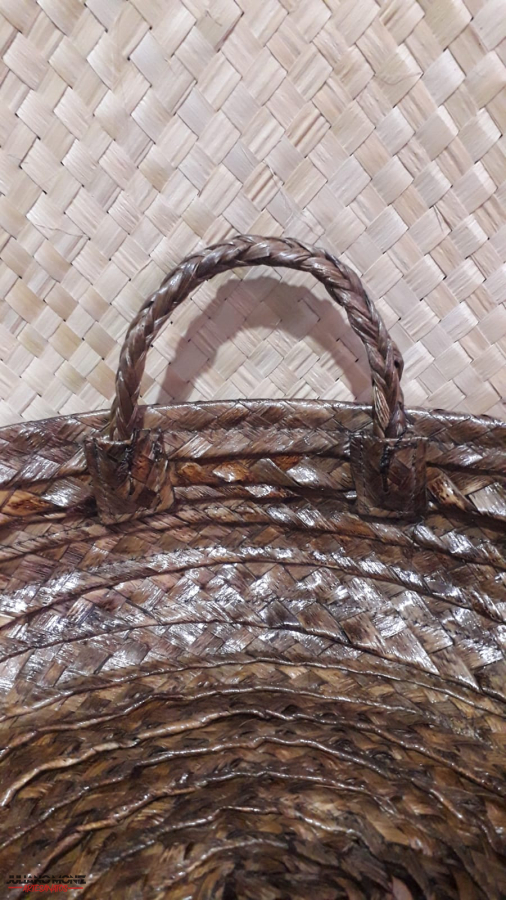 Cesta em palha de carnauba alças de taboua modelo redondo medida 11x41 cm