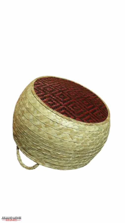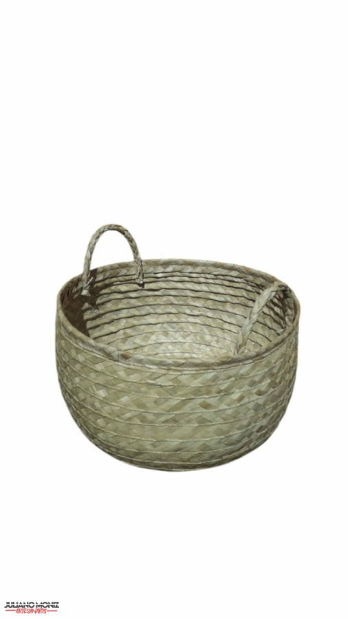 Cesta em palha de carnauba, fibra natural de bambu alças de taboua modelo boliado medida 20x37 cm