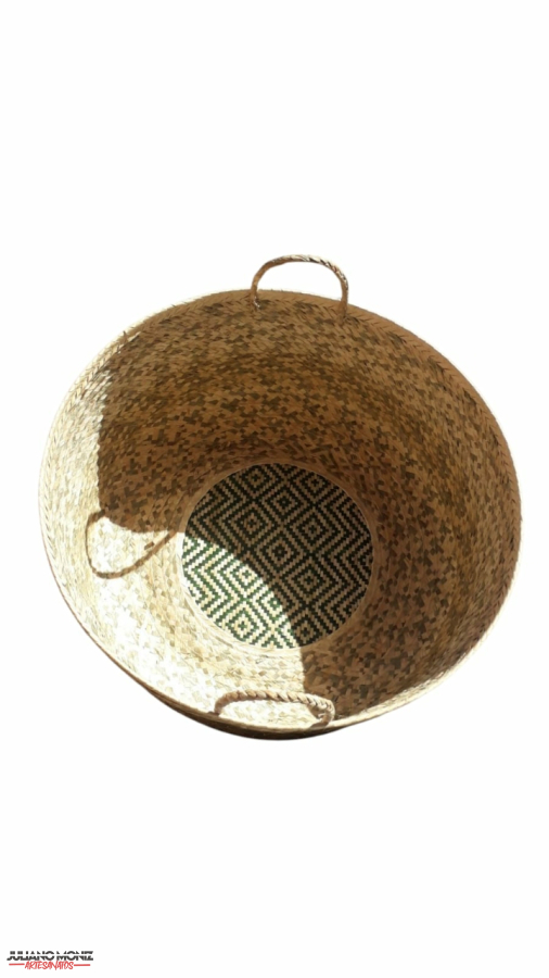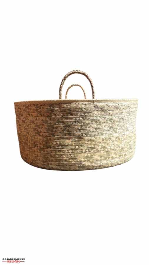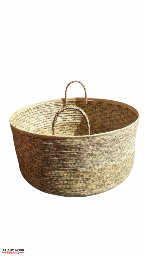 Cestão decorativo em palha de carnauba alças de taboua medida 34x70 cm
