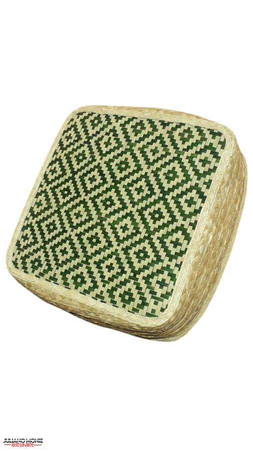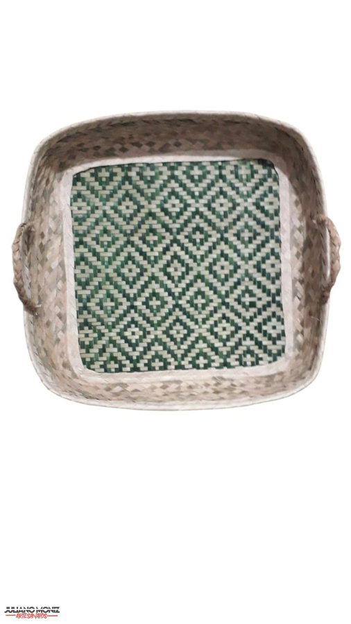Cesta fruteira em palha de carnauba, bambu, alças de taboua modelo quadrado medida 40x40 cm